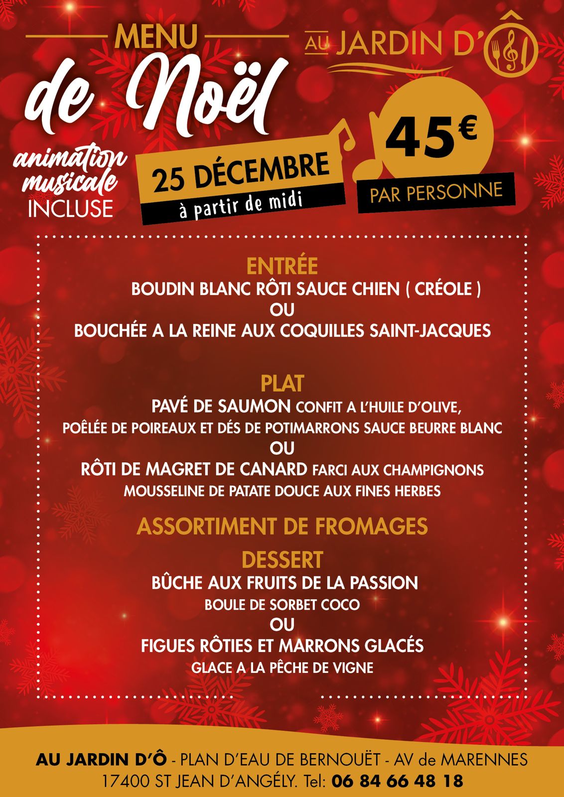 Menu de Noël - Jardin d'O