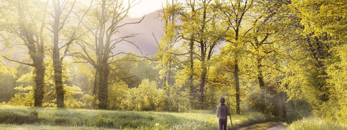 Monter le long du bois par un chemin bitumé.