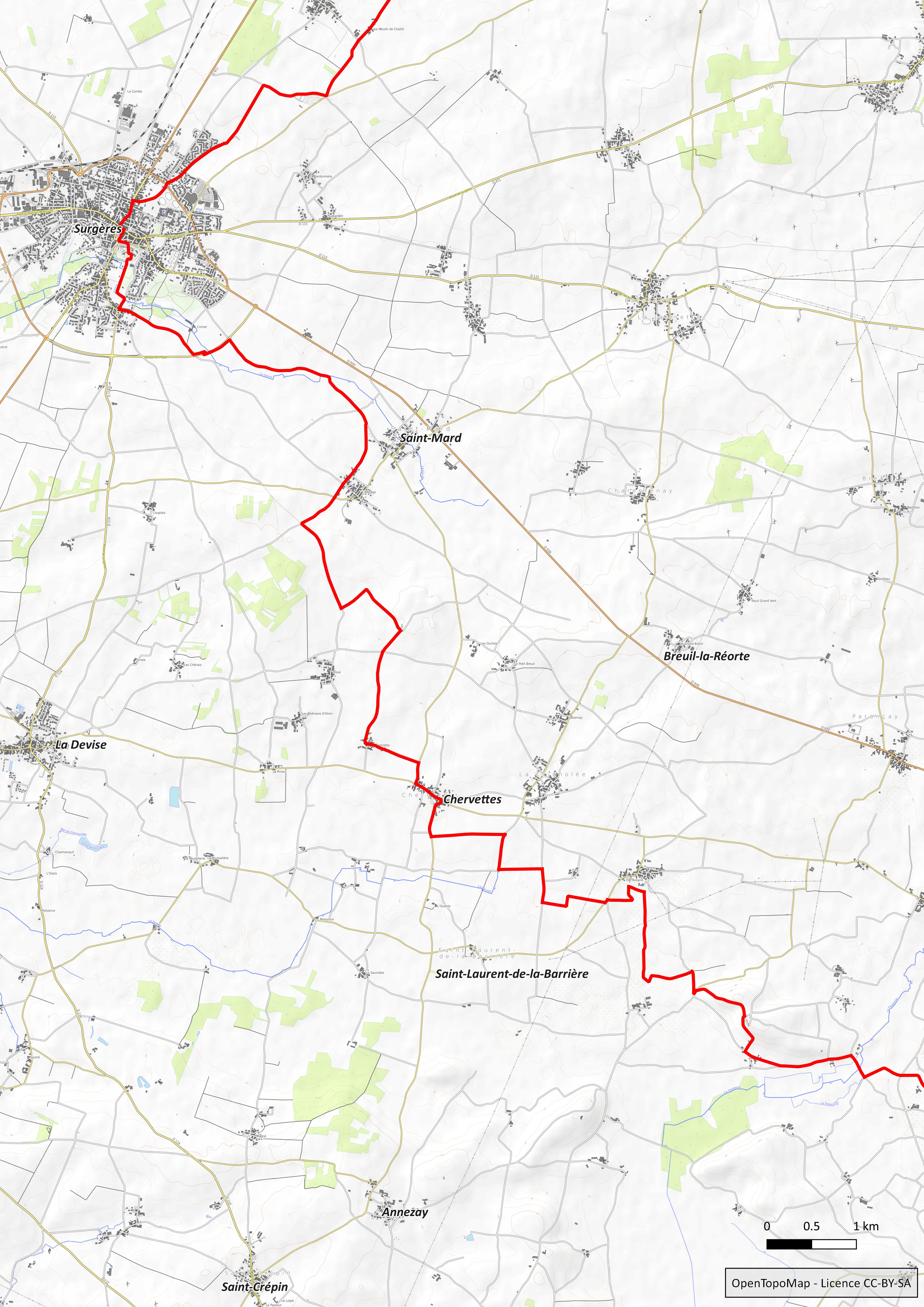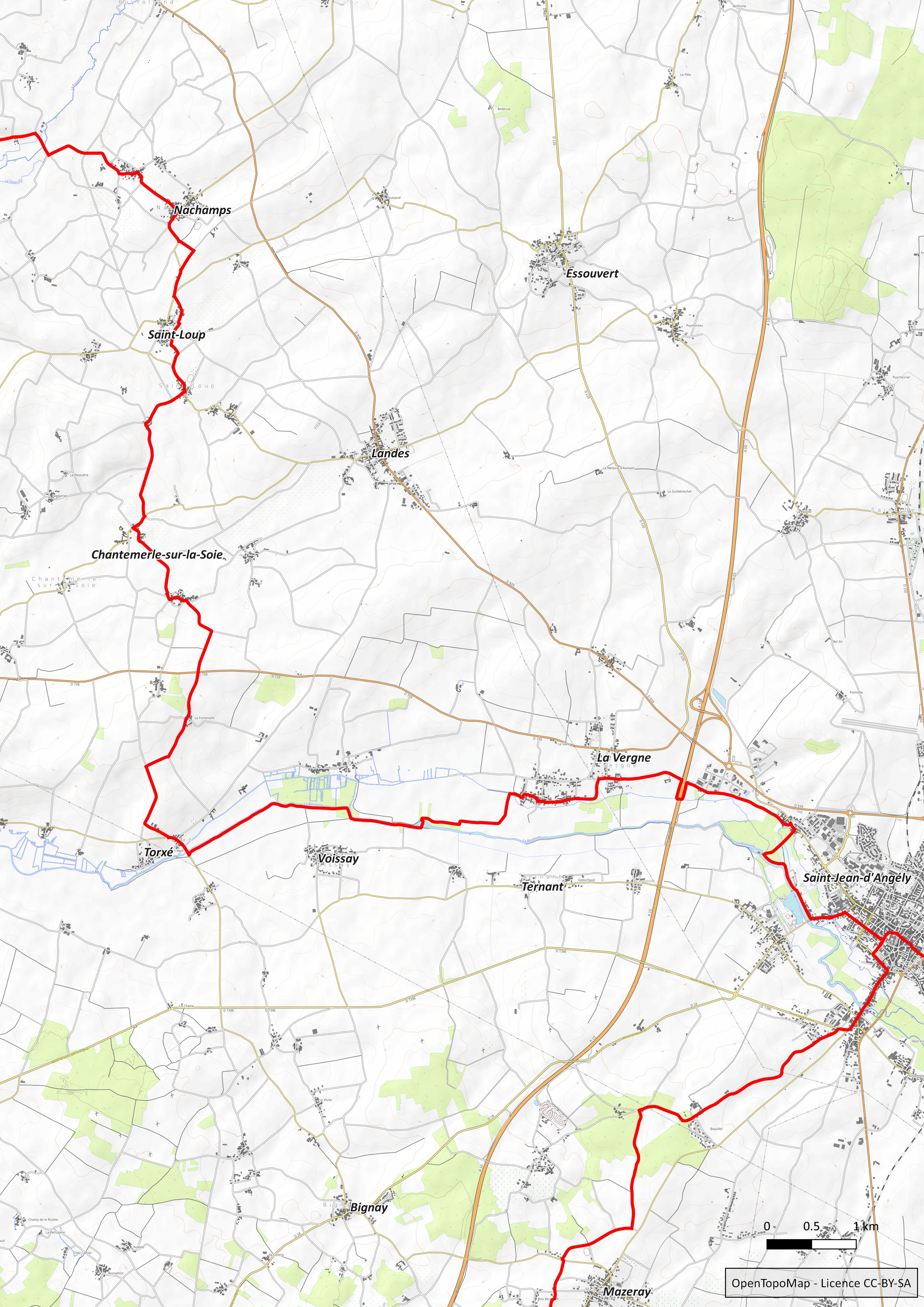 et permet aux pèlerins et randonneurs de Bretagne et de Vendée de rejoindre la voie principale de Tours à Saint-Jean d'Angély.
